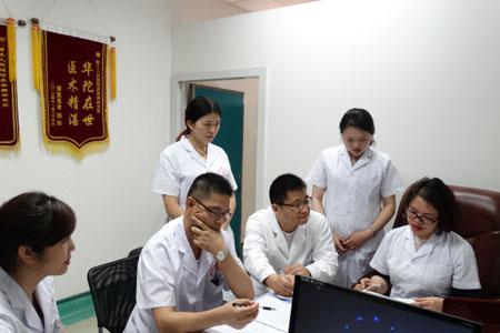皮肤科医护人员开会商讨重症牛皮癣患者诊疗方案