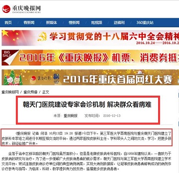 在2016年,除了与第三大学西南医院建立交流平台以外,朝天门医院还建立了医师研讨、病案交流、特需会诊等模式,给广大皮肤病患者提供更好、更优质的医师诊疗服务。